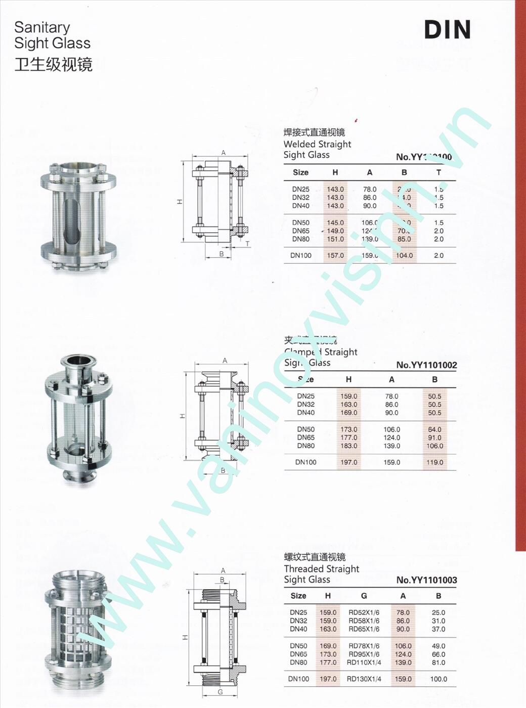 1) Standard: DIN/SMS/ISO/3A/IDF