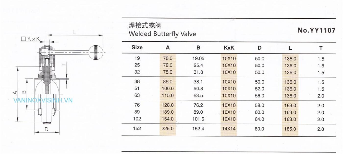 Tên sản phẩm : Van bướm tay rút vi sinh hàn